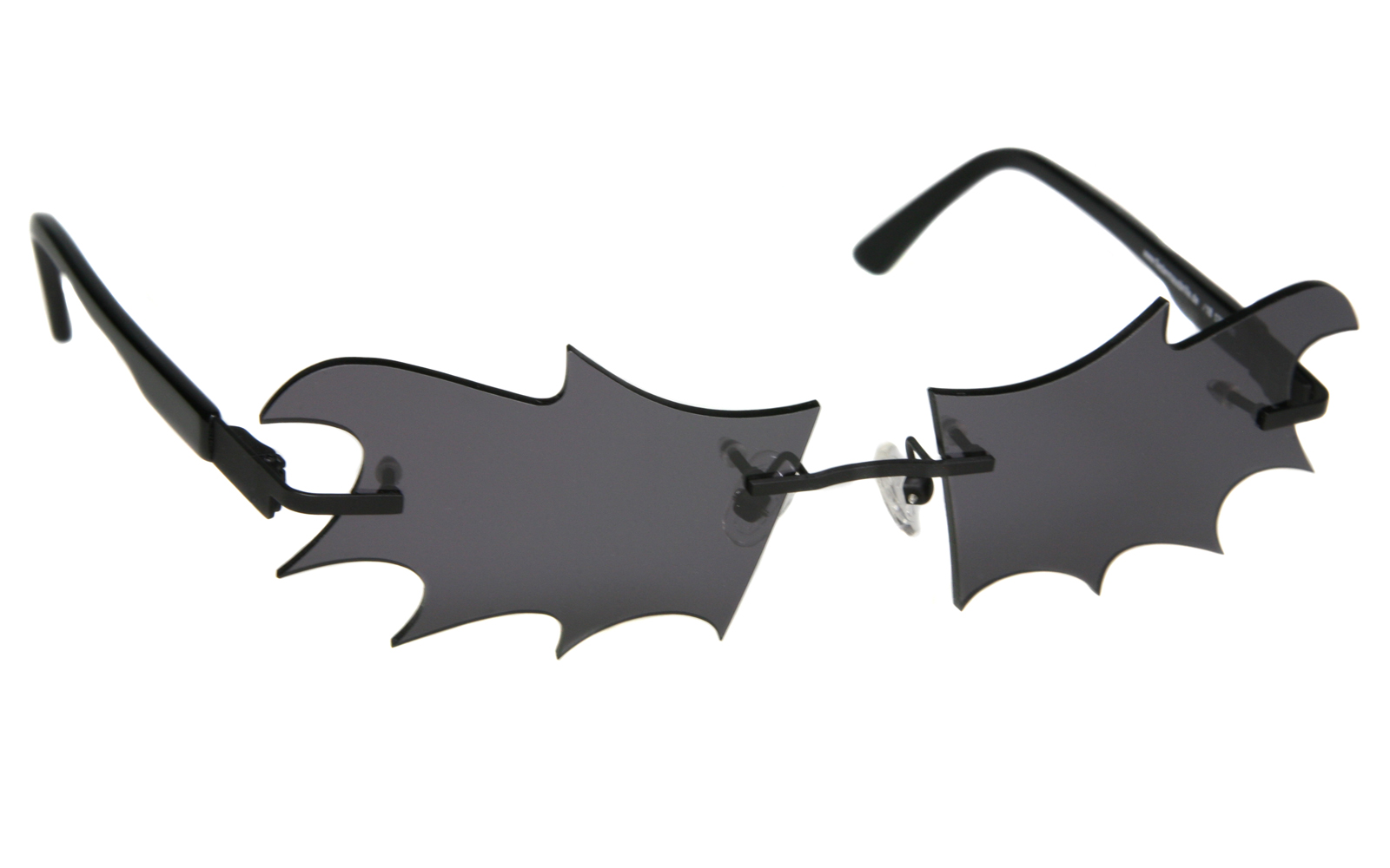 Bei dieser Fledermausbrille ist der Brillenglasrand schwarz lackiert. Die Gläser sind 85% grau getönt.
