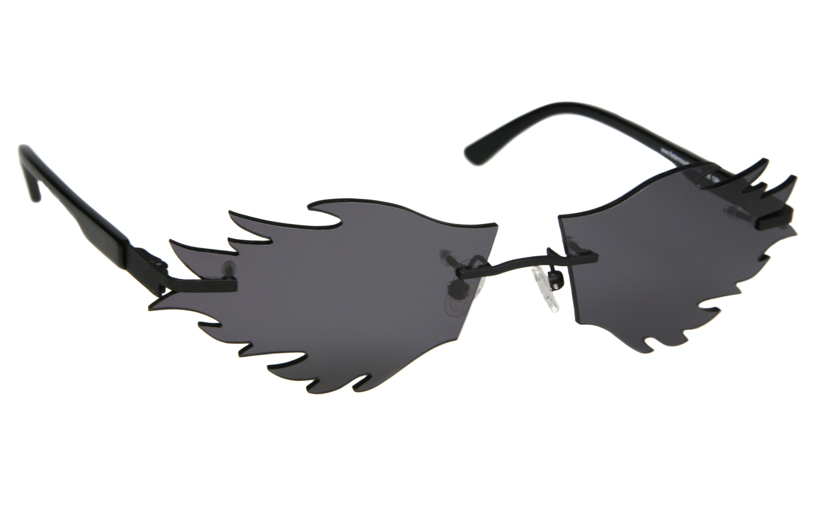 Bei dieser Fledermausbrille ist der Brillenglasrand schwarz lackiert. Die Gläser sind 85% grau getönt.