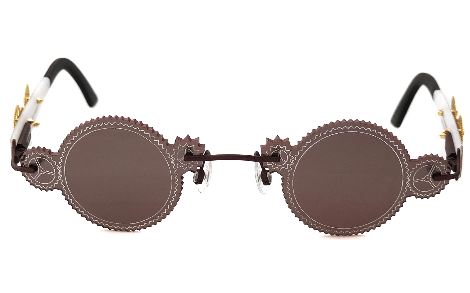 Das Fassungsmittelteil besteht aus Federstahl mit dem Bügelwechselsystem Eye:Max in der Farbe braun matt. Die Bügel sind leicht gegen andere Eye:Max-Bügel austauschbar. Ein Federscharnier ist integriert.