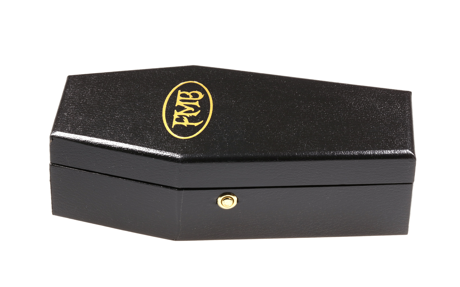 Jede Skelettbrille wird in einem exklusiven Sargetui ausgeliefert.